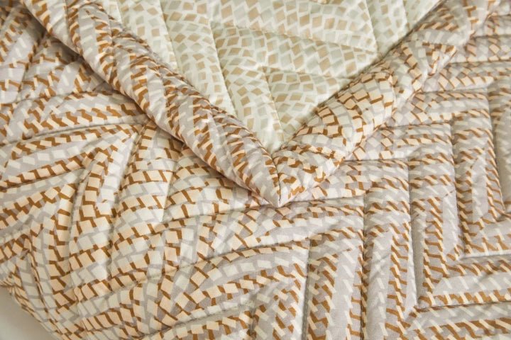 Casing: Printed satin 100% combed long-fiber cotton, printed patterns on both sides with quilting stitches. Sizes: 250 x 250 cm